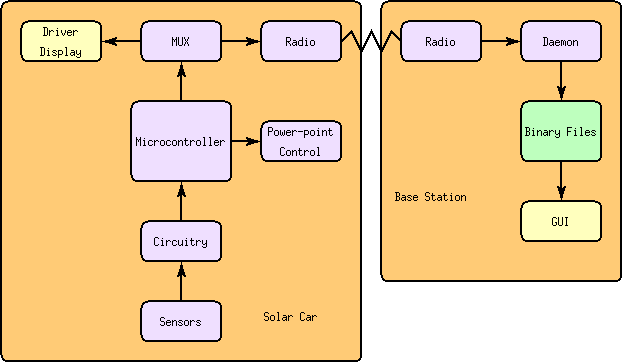 - Purpose: Acquire data for visualization and driver display on a solar car,